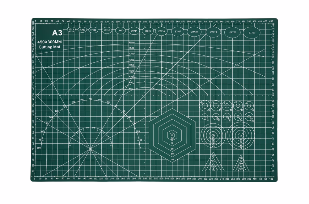 Double-sided with metric and inch grids, Self-healing 5-layer PVC construction, Non-slip surface for stable cutting