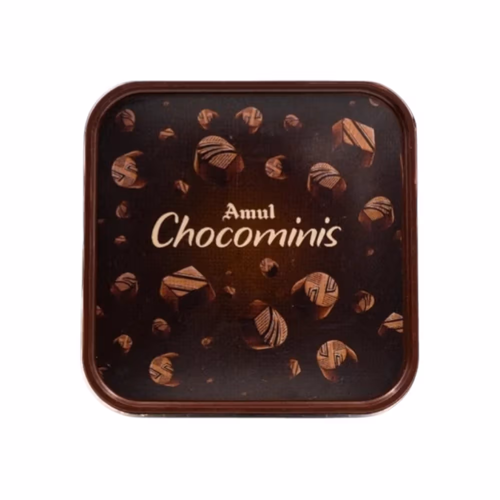 Multiple choco bites in a tub, delicious choco mini, goodness of milk, allergen-free
