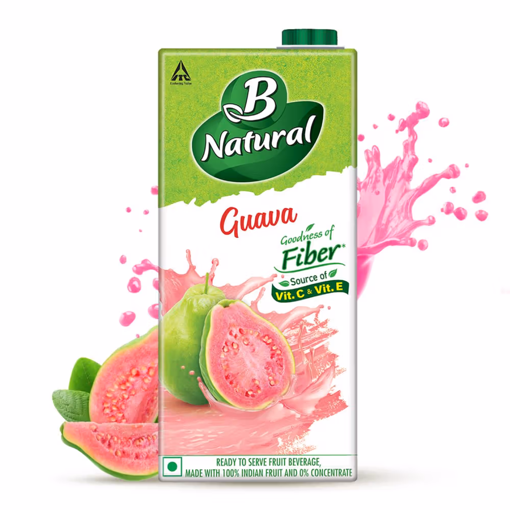 Water, Guava Pulp (20%), Sugar, Acidity Regulators (INS 330, INS 296), Natural Flavours and Natural Flavouring Substances, Stabilizers (INS 440, INS 415, INS 466), Vitamins, Iodized Salt, Polydextrose (Dietary Fiber) (0.01%) and Colours (INS 150d, INS 124)