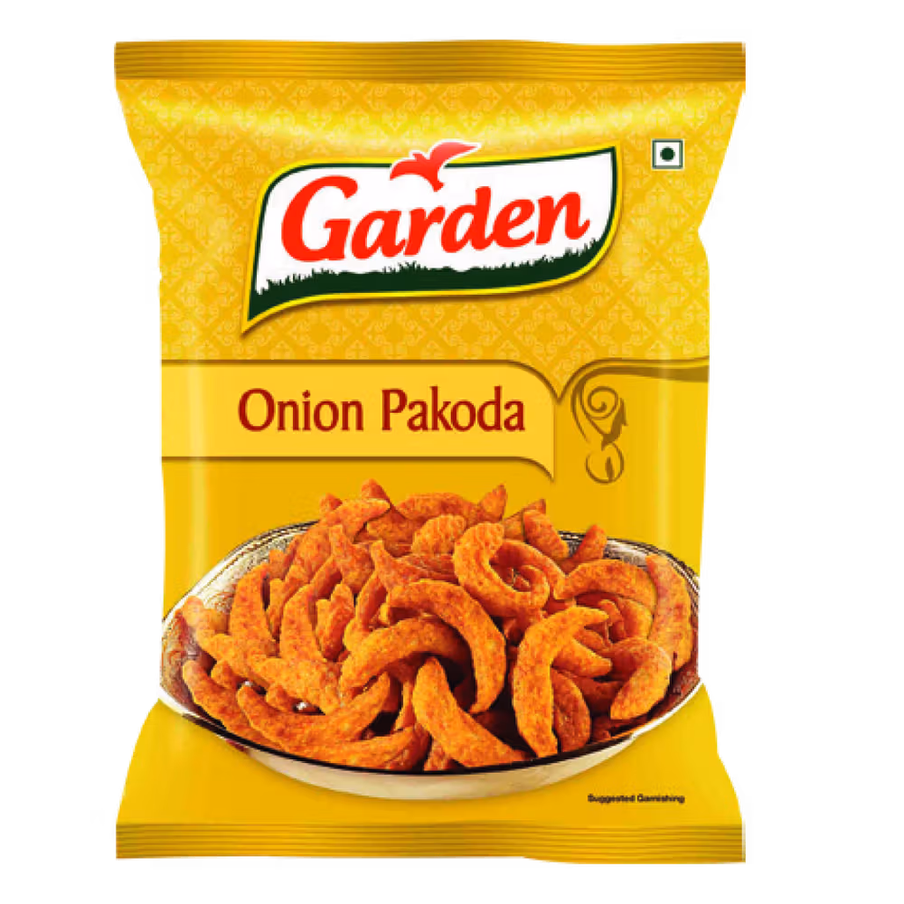 Rice flour, Refined Palmolein Oil, Semolina, Dehusked Bengal Gram Flour (Besan), Pea Flour, Corn Starch, Seasoning Mix Powder (Acidity Regulator (INS 296, INS 330), Anticaking Agent (INS 551), Flavor Enhancer (INS 627, INS 631), Paprika Extract (INS 160 (c)), Flavor (Natural and Nature Identical Flavoring Substance), Iodised Salt, Black Salt, Chili, Garlic Powder, Turmeric Powder, Bishops Seeds (Ajwain), Asafoetida, Onion Powder (0.05%), Dry Mango Powder, Onion Solids