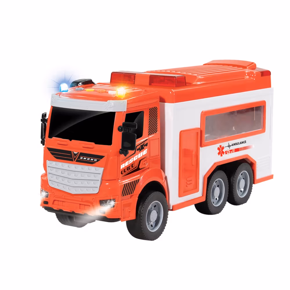Bump and go movement with lights and sound, Interactive stretcher for realistic play, Auto-direction change on obstacle contact