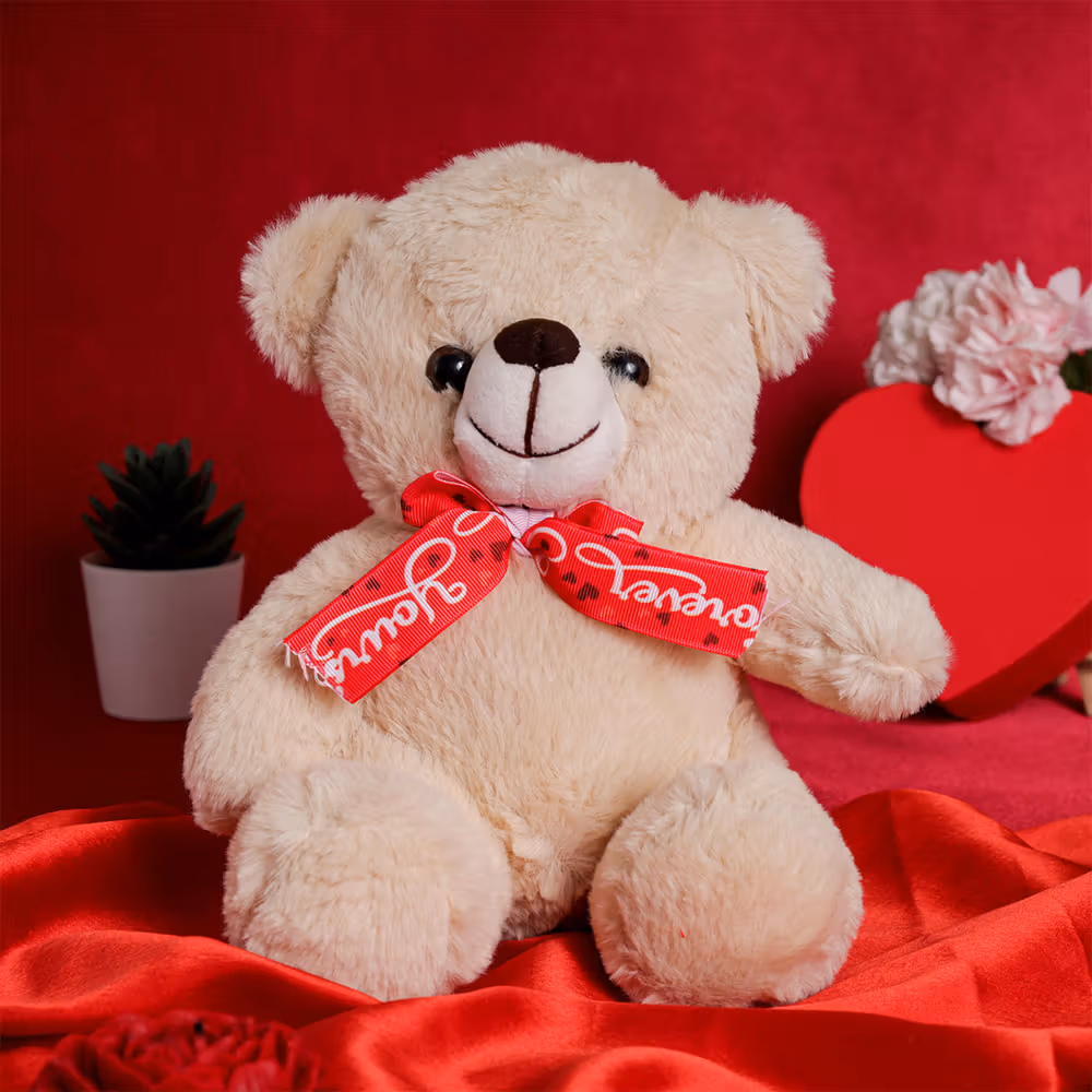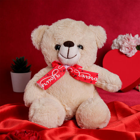 Soft and cuddly plush material, perfect for gifting occasions, adorable design with a bow, lightweight and easy to carry