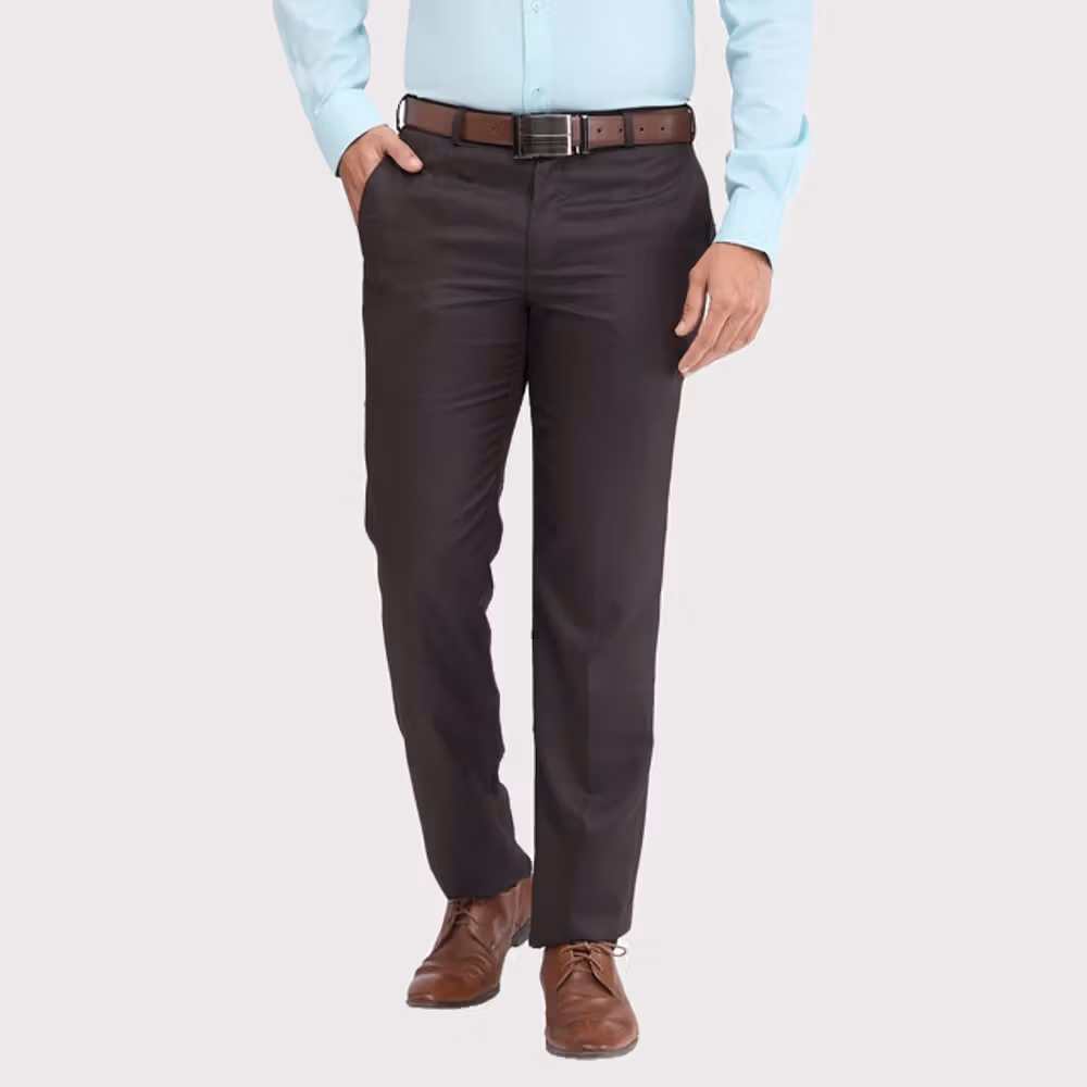 Crafted from poly viscose blend, regular fit for all-day comfort, pleatless design for a sleek look, perfect for formal occasions