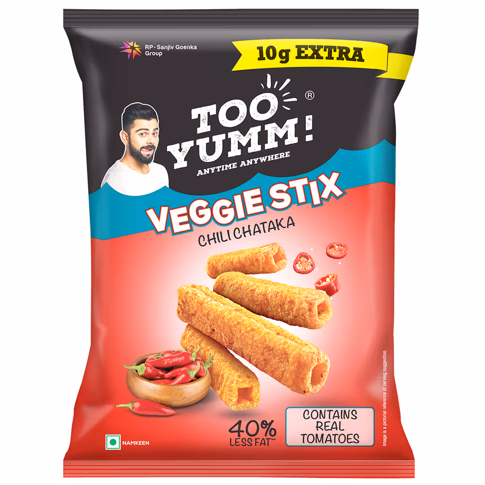Corn Flour (47%), Rice Flour (29%), Edible Vegetable Oil (Rice Bran Oil), Seasoning [lodised Salt, Sugar, "Spices & Condiments [Contains Chilli (5%) and Onion), Acidity Regulator (INS 330), Anticaking Agent (INS 551), Dehydrated Herb, Flavour Enhancers (INS 627, INS 631), Antioxidant (INS 300), Natural and Nature ldentical Flavouring Substances], Refined Wheat Flour (Maida) (2.5%), Sugar, Potato Powder (1.5%), Tomato Powder (0.8%), Anticaking Agent (INS 170), lodised Salt, Yeast Extract