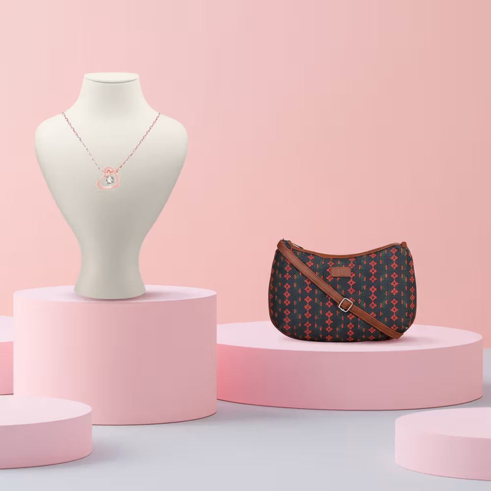 Zouk Women's Motifs Vegan Leather & Handcrafted Fabric 5.7L Shoulder Handle Shoulder Bag | Black